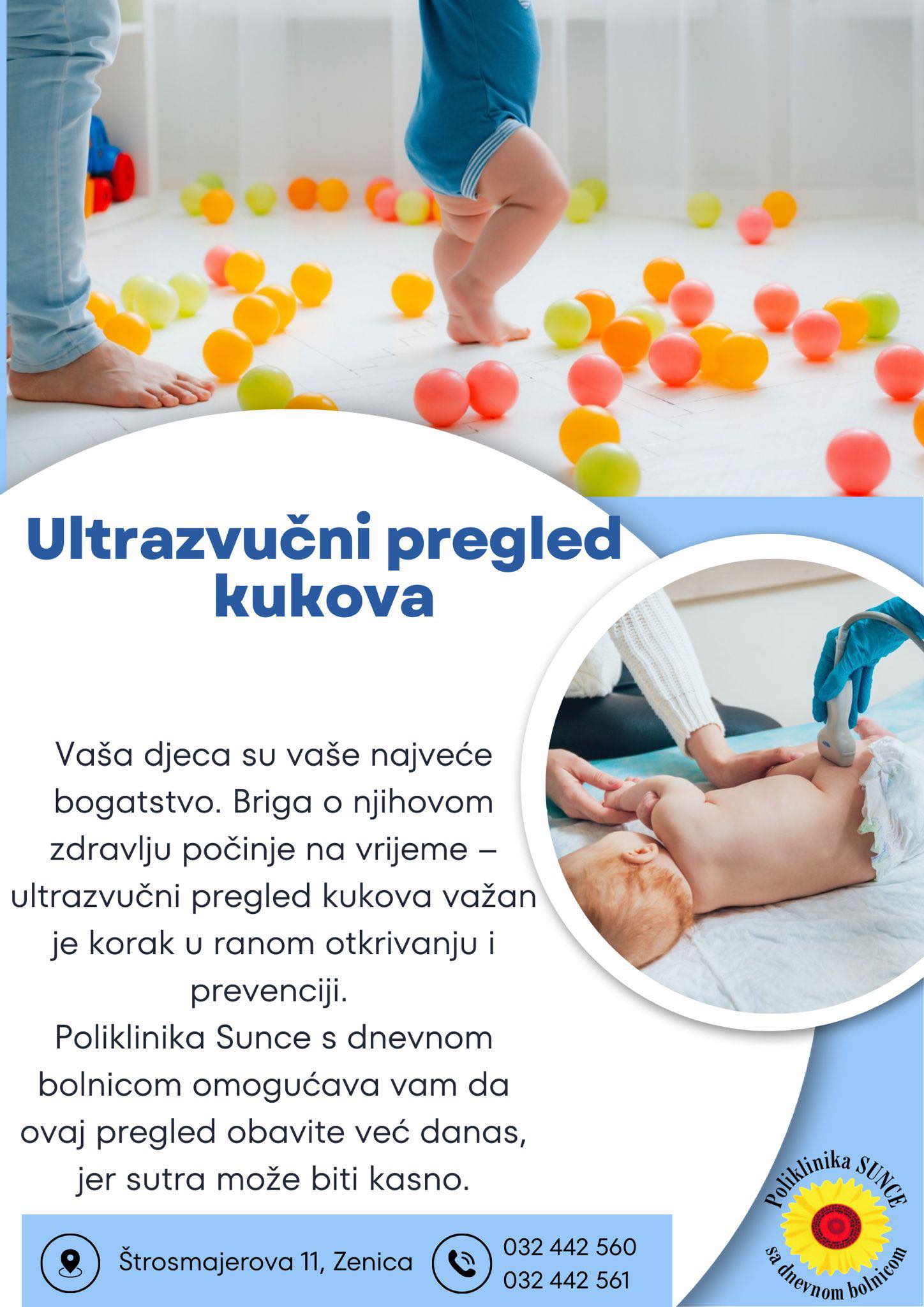 - kukovi: ultrazvuk kao potpuno bezopasna metoda, koristi se za pregled kukova kod novorođene i dojenačke djece.