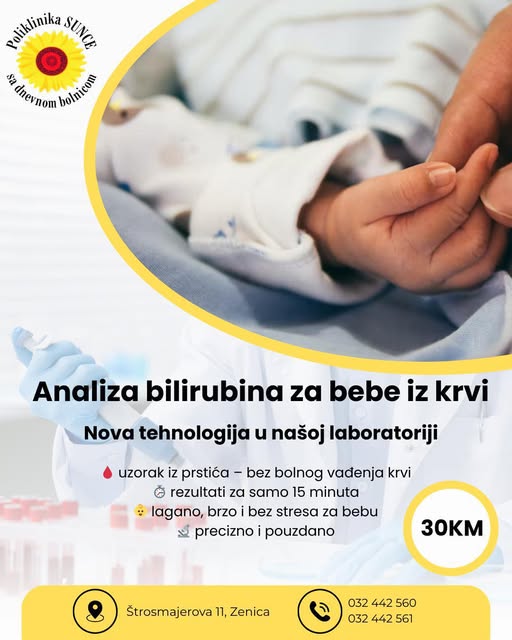 U laboratorijskoj dijagnostici poliklinike Sunce sa dnevnom bolnicom Zenica se provode biohemijske, hematološke, imunohemijske i mikrobiološke pretrage.