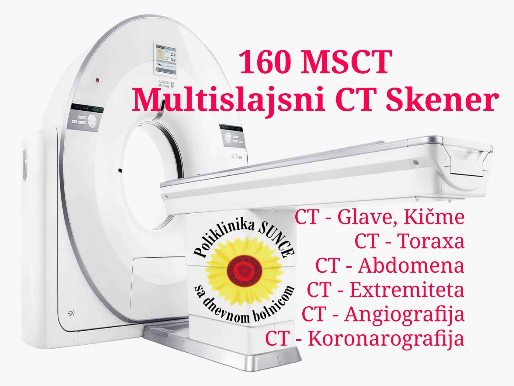Radiološki centar Poliklinike Sunce sa dnevnom bolnicom Zenica sada posjeduje novi uređaj United Imaging 160 Multislice CT aparat uz pomoć kojeg je moguće za veoma kratko vrijeme izvršiti najsloženije CT pretrage kao što su: